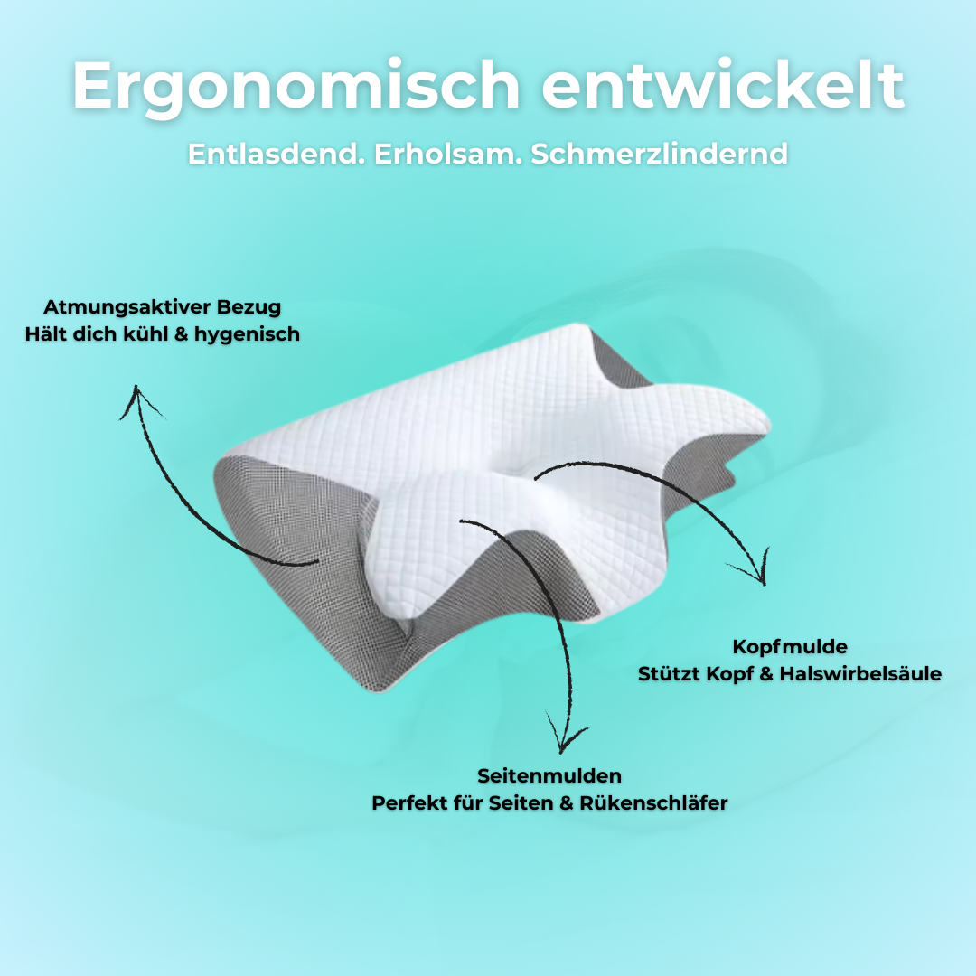 Das orthopädische Nackenkissen, das sich deinem Körper anpasst – nicht umgekehrt.