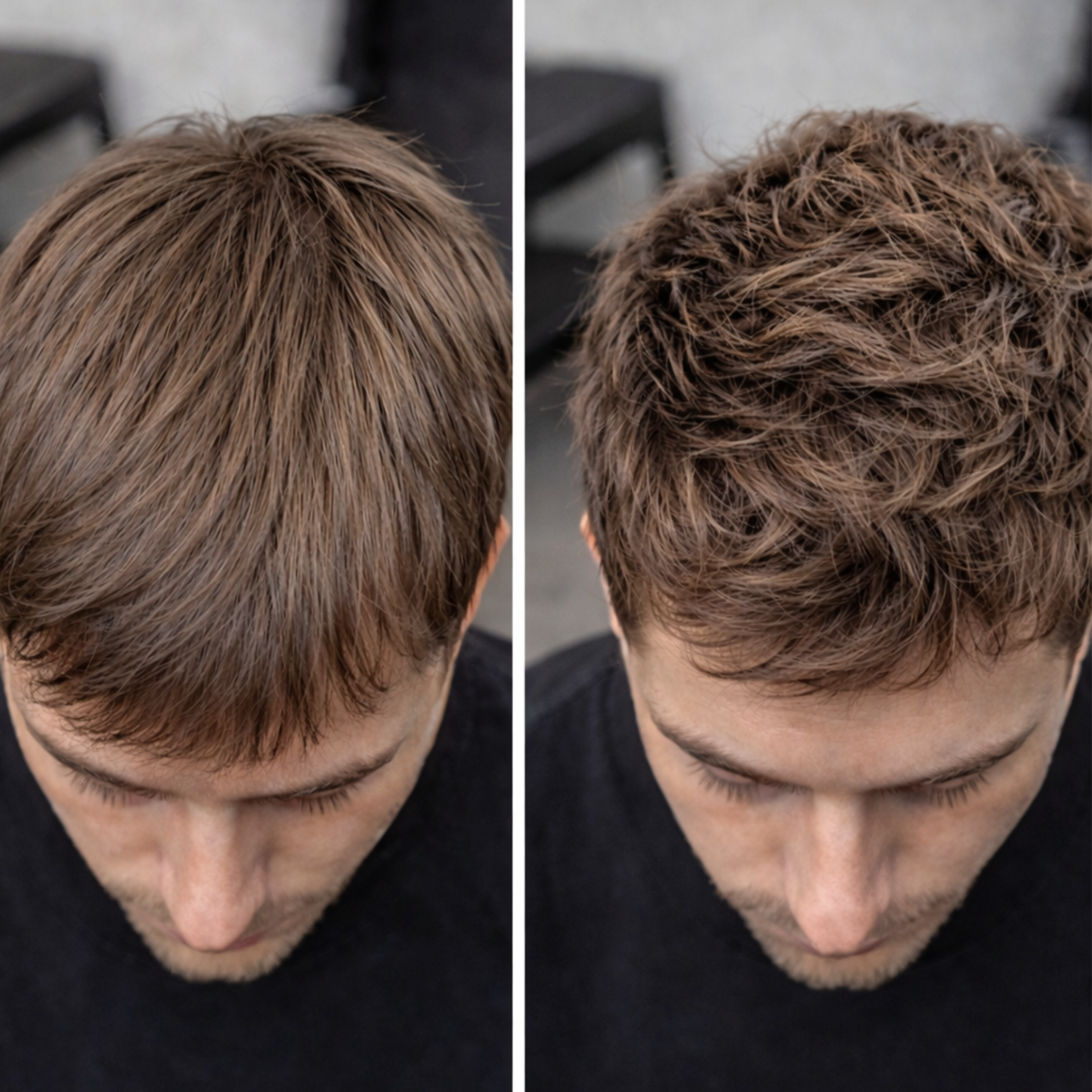 Endlich Kontrolle im Haar – ohne Föhn, ohne Stylingprodukte. Mit natürlicher Textur wirkt dein Haar definierter, strukturierter und bleibt den ganzen Tag in Form. Weniger Aufwand am Morgen, mehr Sicherheit im Alltag und ein Look, der sich gut anfühlt. Sichtbar schon nach der ersten Anwendung.